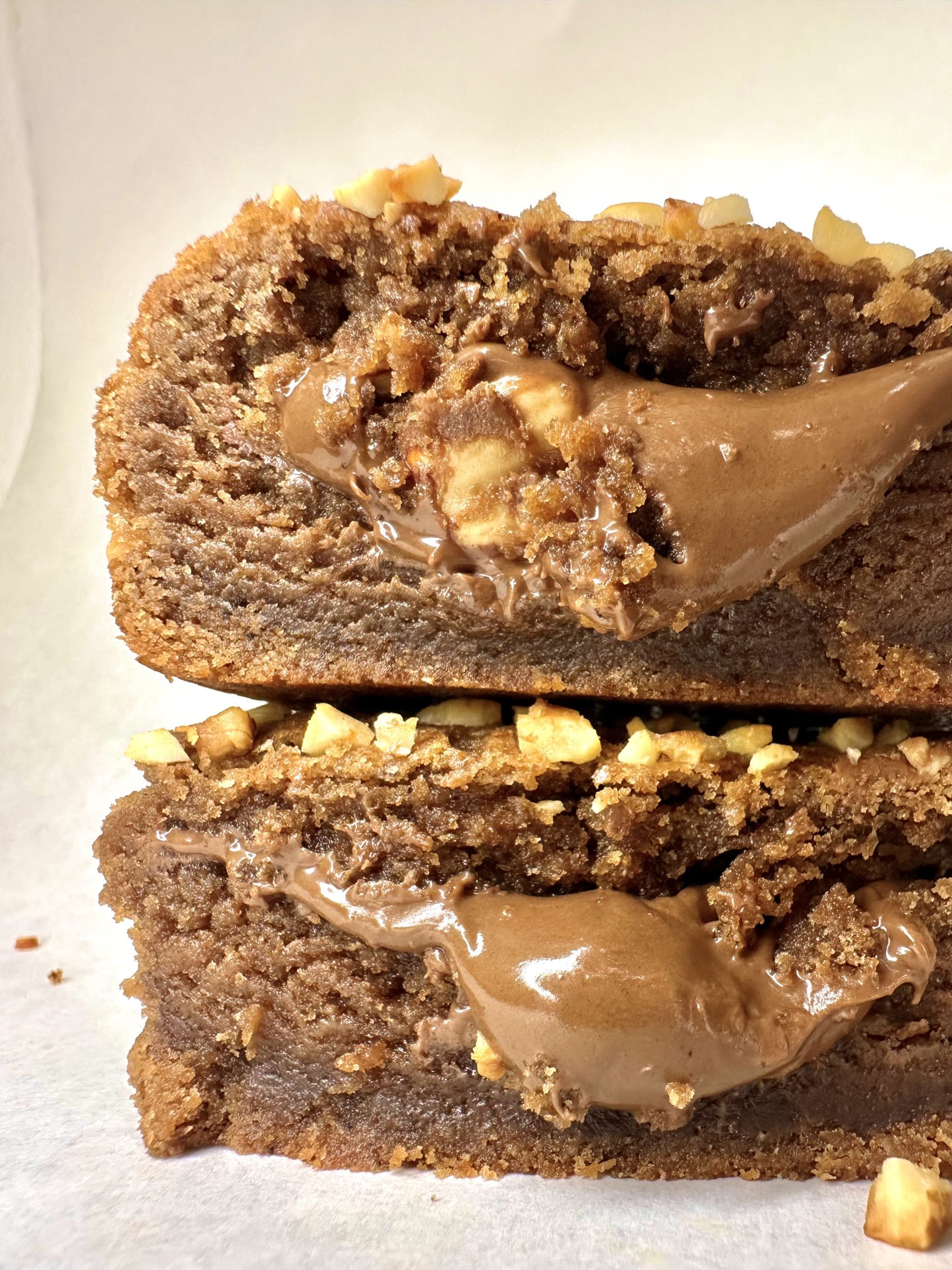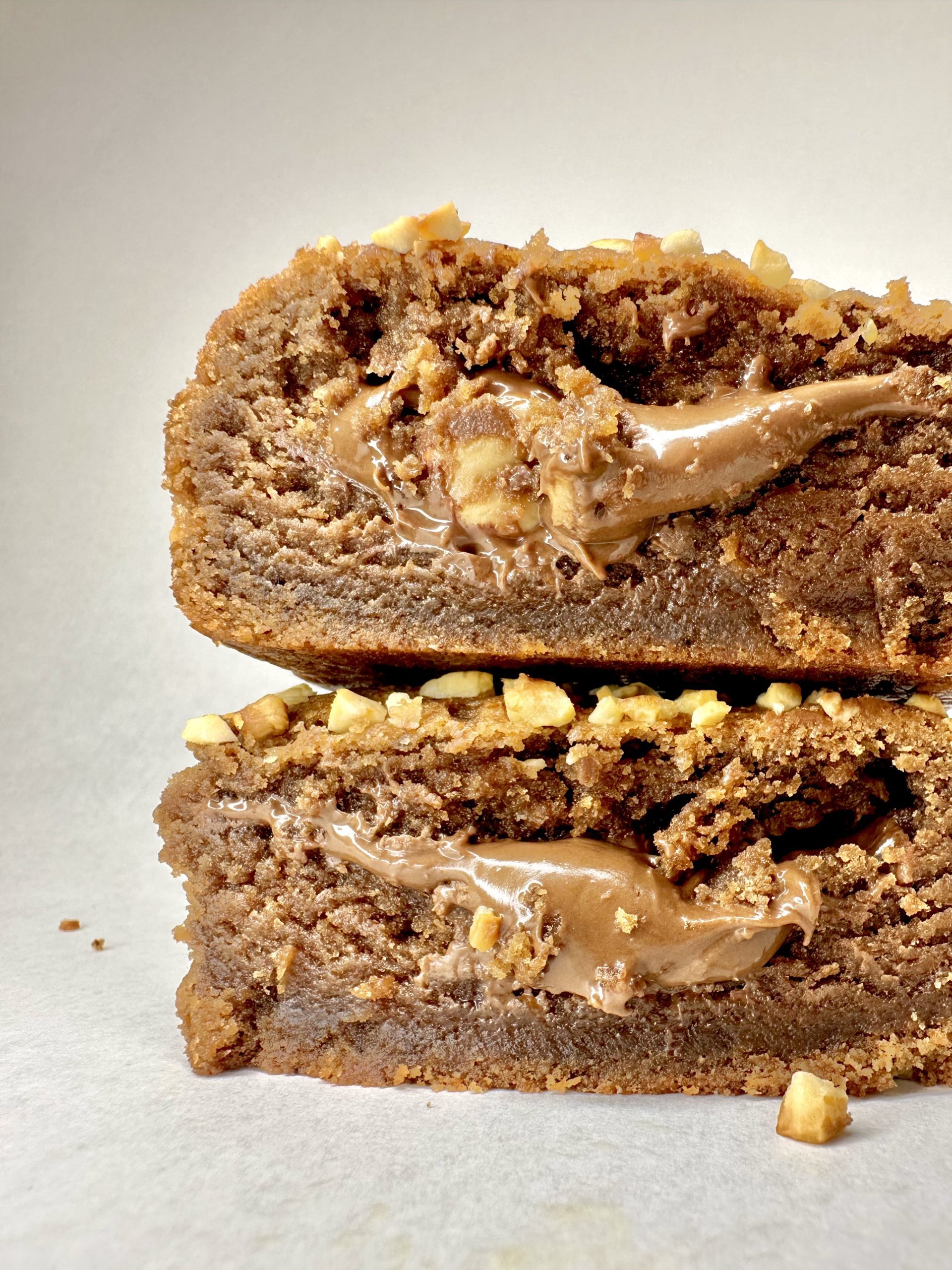 Une pâte à cookie cacao au coeur Nocciolata et noisette entière. Le tout recouvert de noisette, comme un Ferrero mais maison !